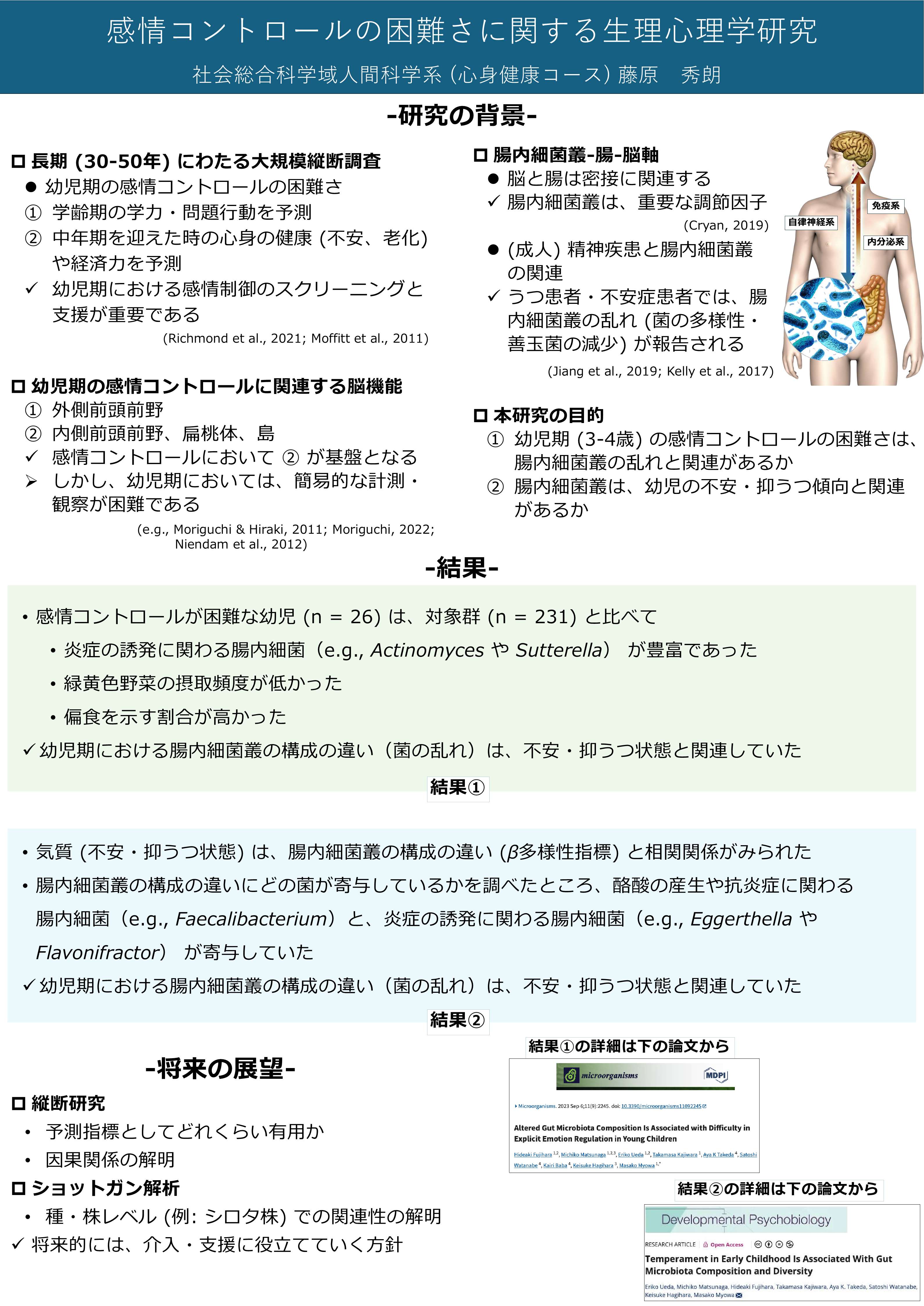感情抑制の研究はこれまで脳機能に焦点を当ててきたが、本研究では横断的データをもとに、身体、特に腸内環境に注目する意義を説明する