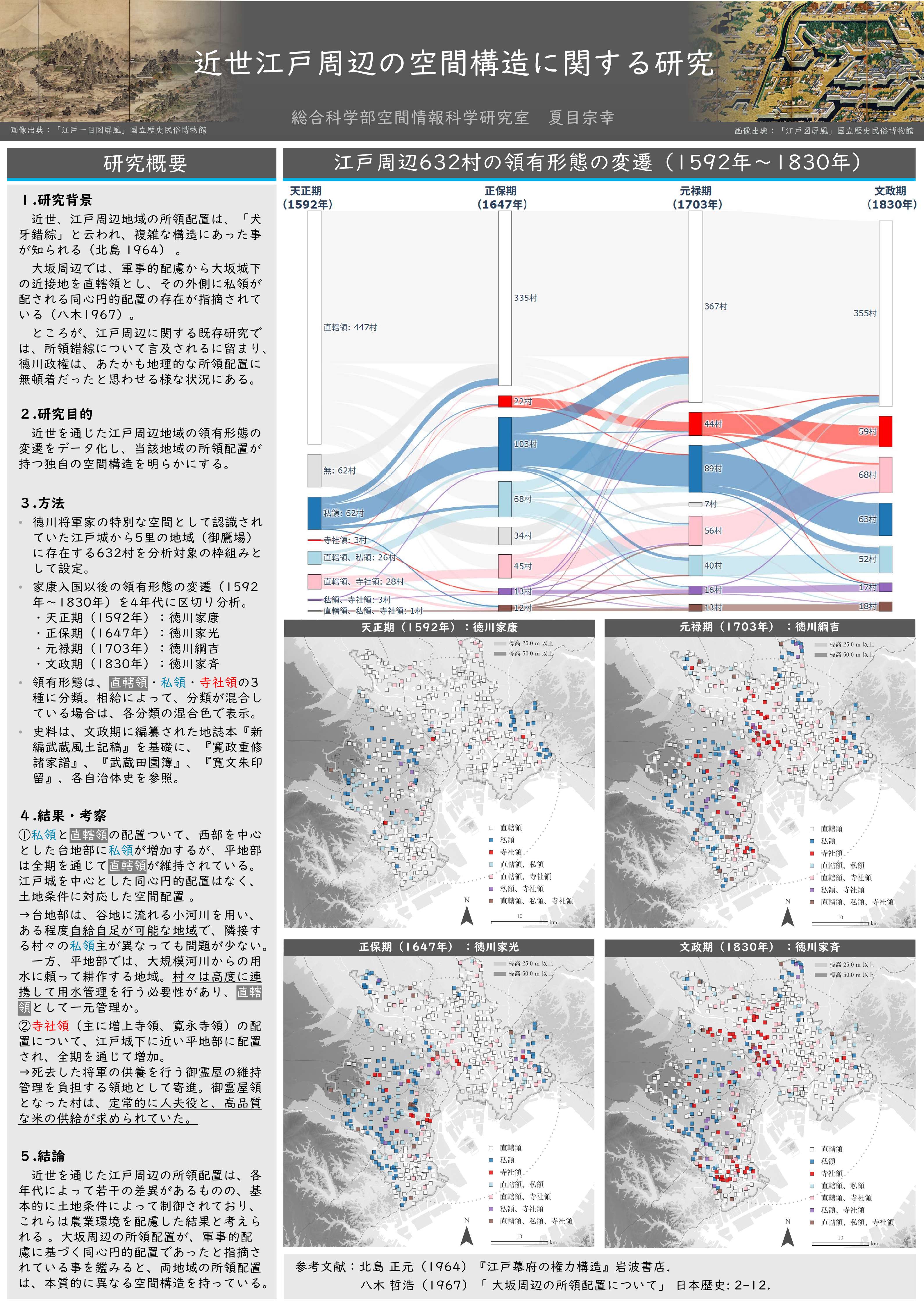 江戸周辺の領地や狩猟地の分布から、近世社会の構造を考察する研究です