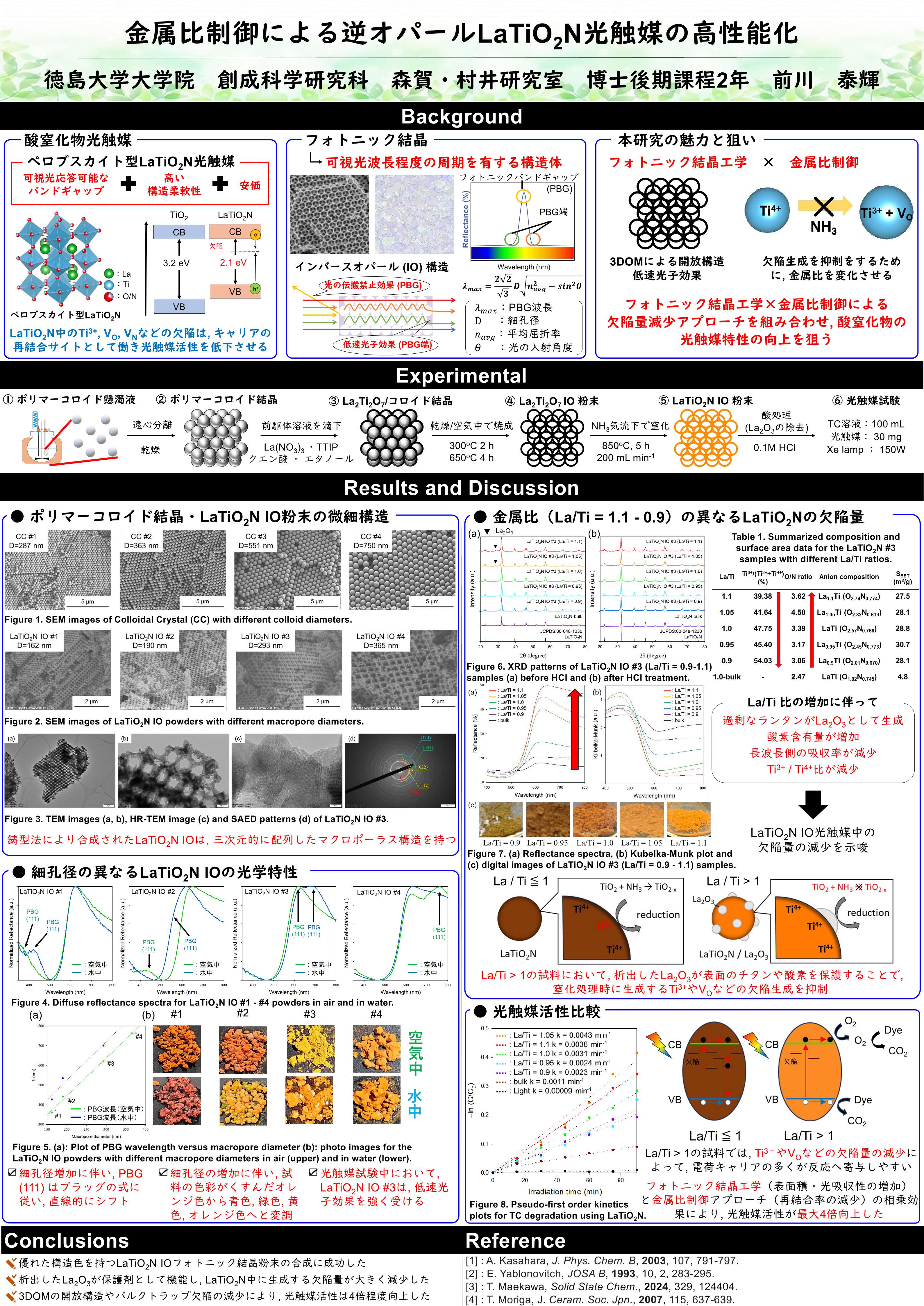 金属比制御による逆オパールLaTiO2N光触媒の高性能化