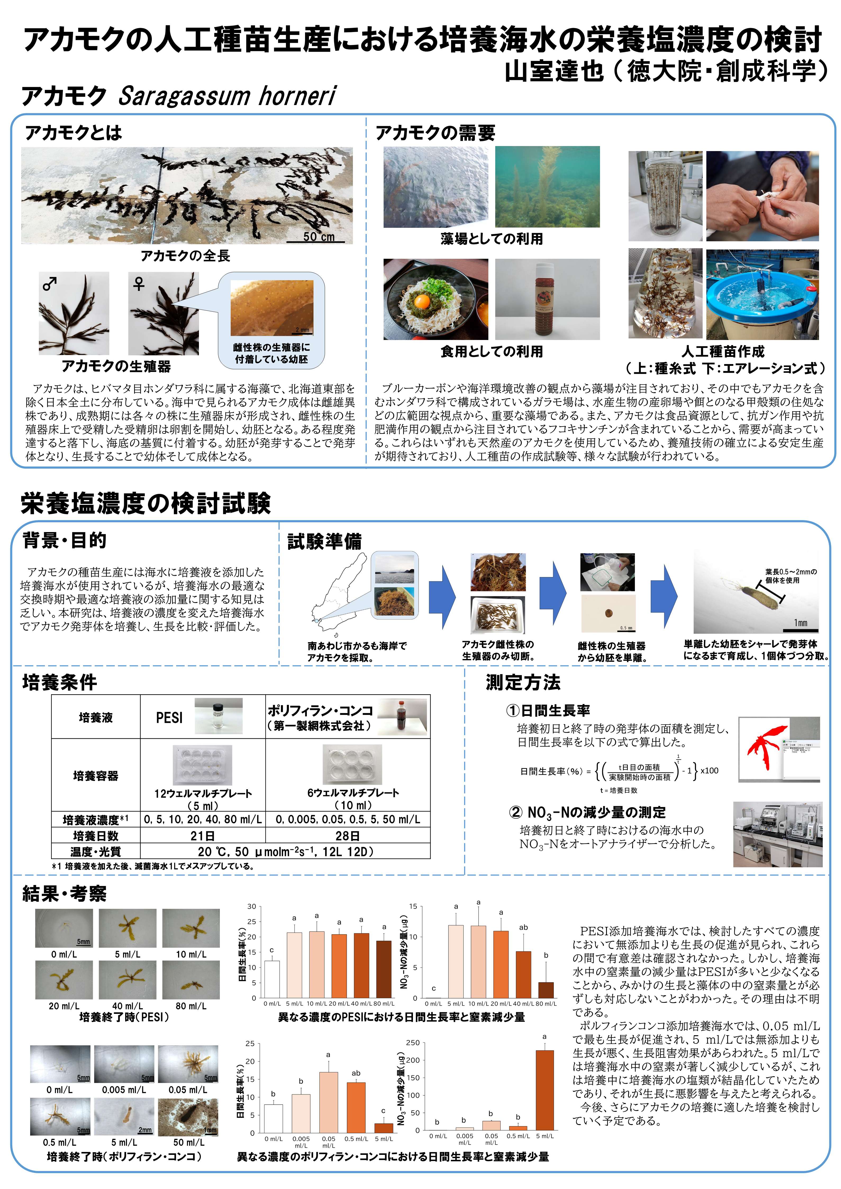 近年需要が高まっているアカモクの人工種苗生産の効率化を目指し、培養条件を検討した