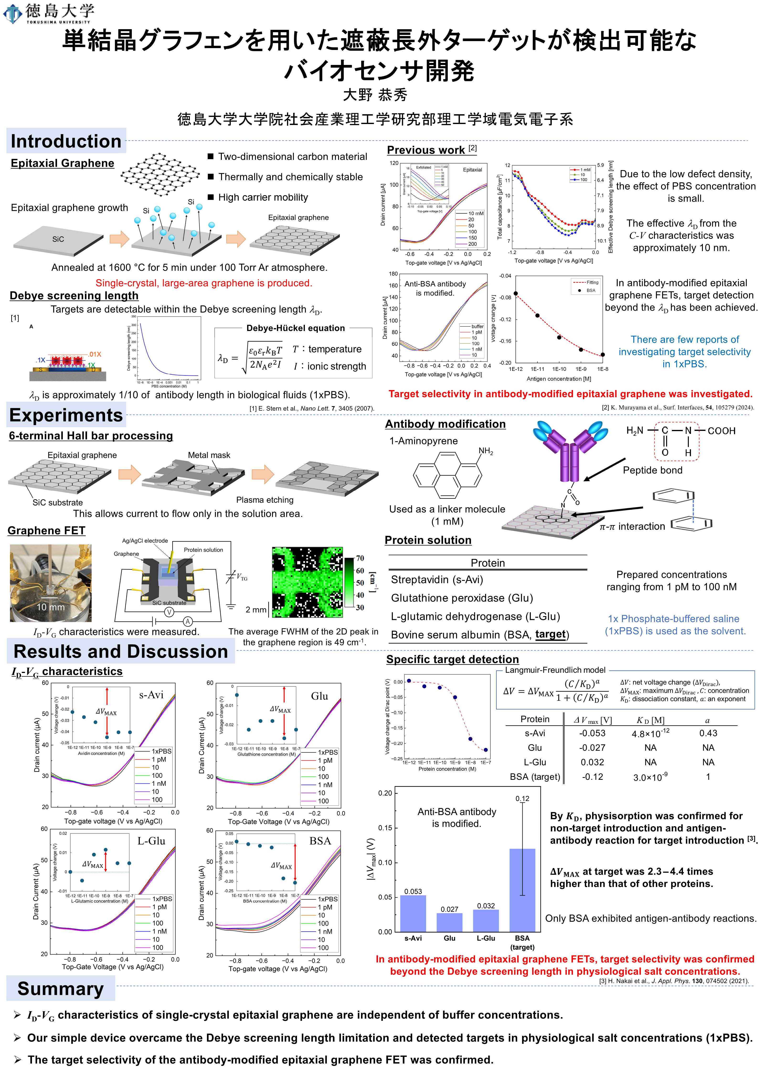 単結晶グラフェンを用いた遮蔽長外ターゲットが検出可能なバイオセンサ開発