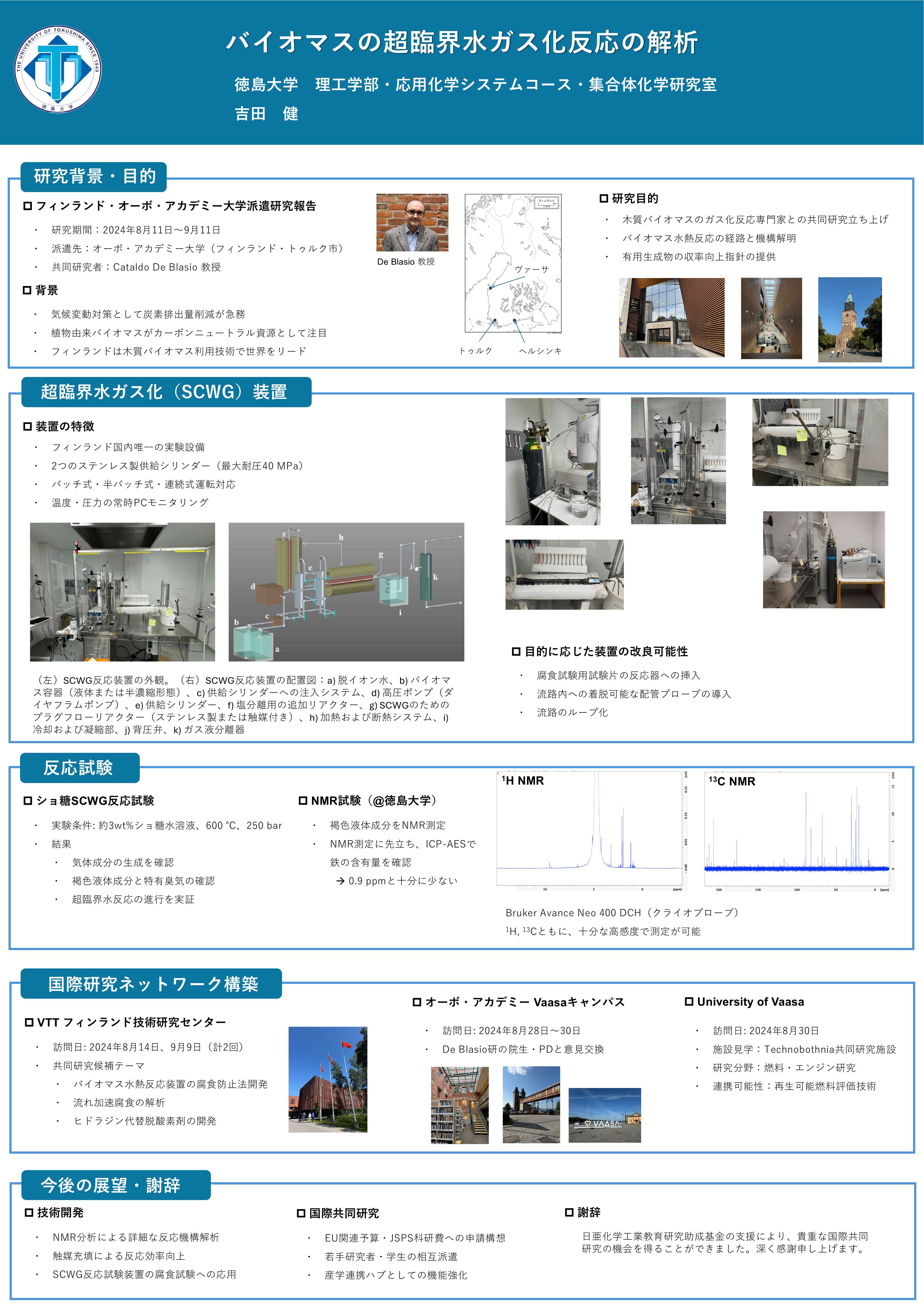 オーボ・アカデミー大学と共同で、超臨界水ガス化反応装置の開発と生成物のNMR分析を行った
