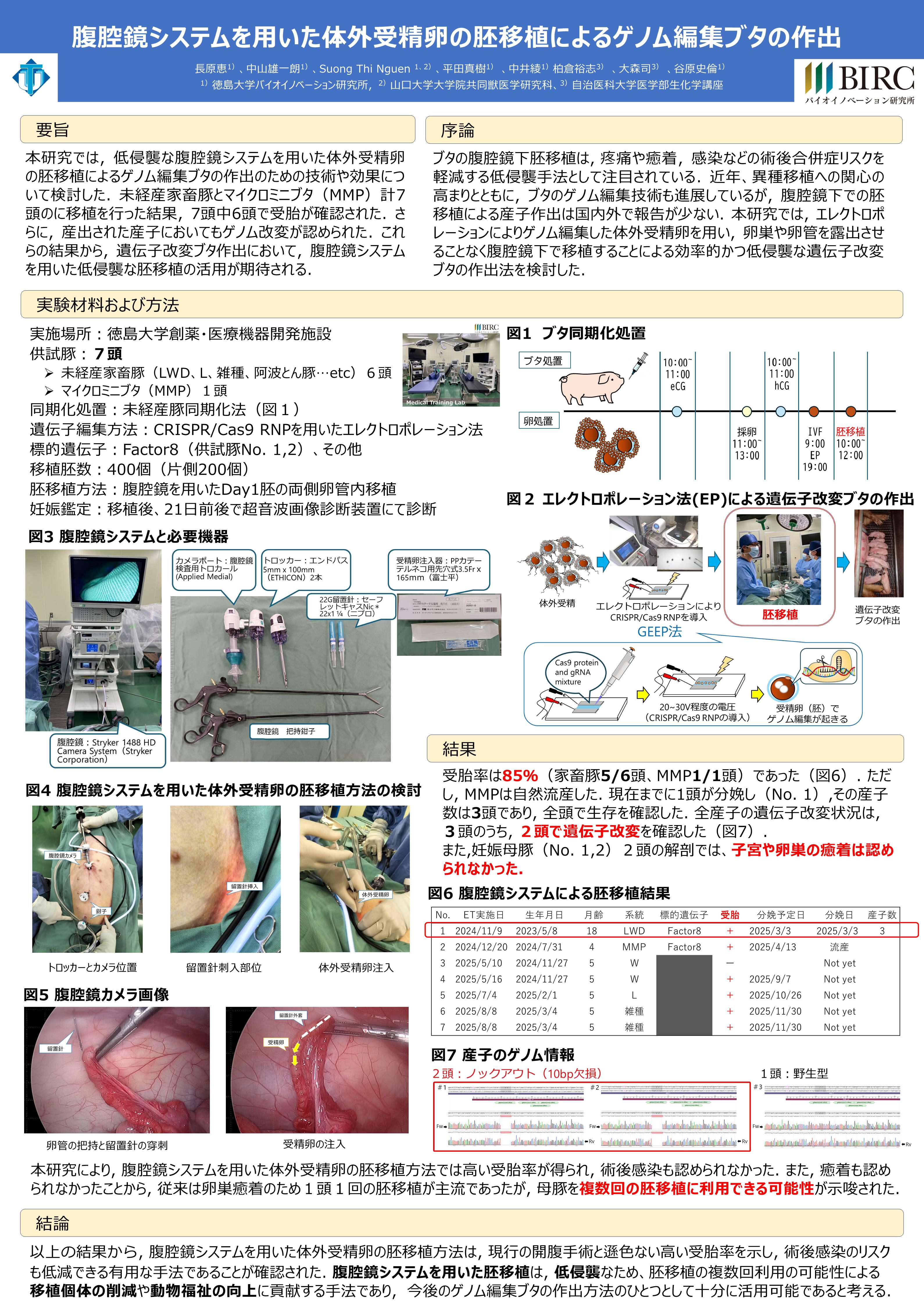 腹腔鏡システムを活用した体外受精卵の胚移植によるゲノム編集ブタの作出