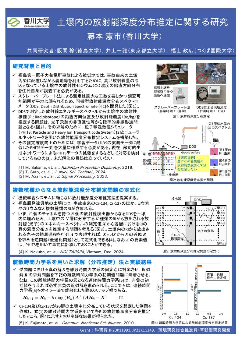 土壌内の放射能深度分布推定問題の定式化と解法に関する研究に取り組んでいます