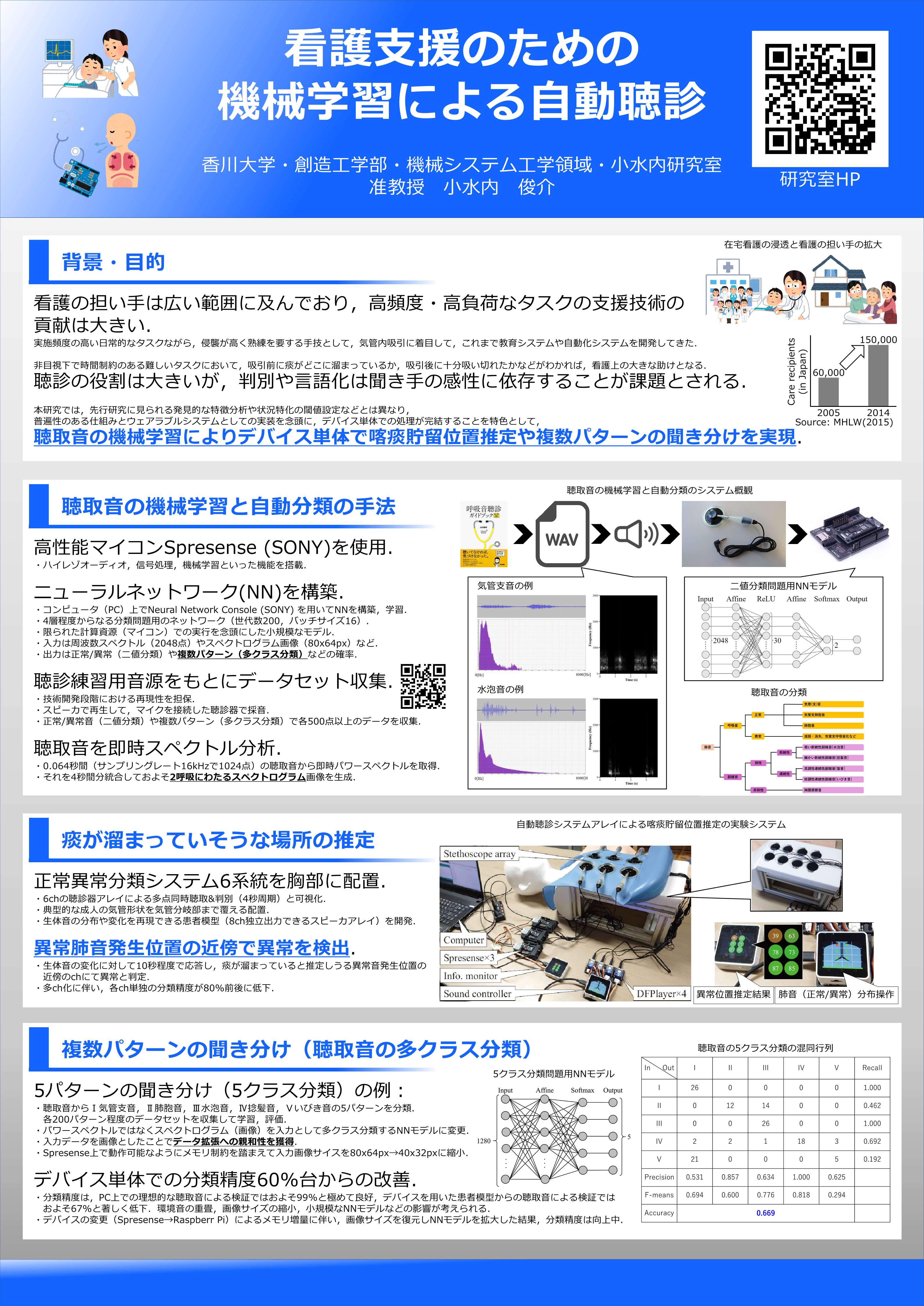 高頻度・高侵襲な看護ケアの支援のための聴診を自動化するウェアラブルサイズのシステムについて紹介する